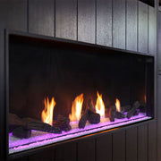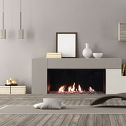 Customize your Plaza by installing the finishing material of your choice down to its glass opening, without the standard requirements of non-combustible board or special framing. Five fire glass colors, two ember kits, two log set options, an optional Black Glass liner, and multi-colored LED lighting let you create a focal point that suits your style and space.