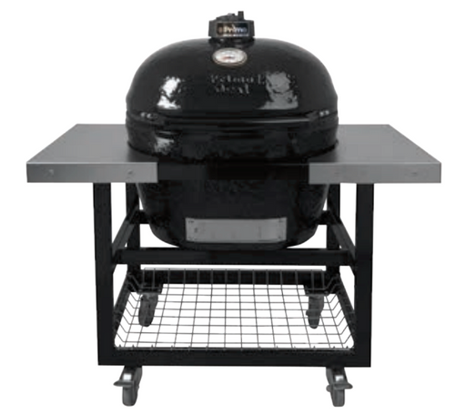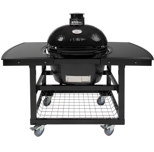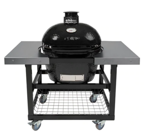 View full detailsPrimo Oval Large 300 Ceramic Kamado Grill On Steel Cart With 2-Piece Island Side Shelves And Stainless Steel Grates