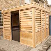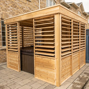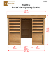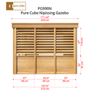 The Pure Cube Knotty Red Cedar Nipissing Gazebo is a stunning addition to any backyard, patio, or cottage retreat. Designed with both style and functionality in mind, it offers a perfect blend of privacy, durability, and elegance — making it ideal for housing a hot tub, dining area, or lounge space.