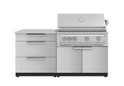Outdoor Kitchen Stainless-Steel 4 Piece Cabinet Set with 3 Drawer, Grill Cabinet, Platinum Grill, and Countertop