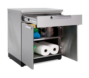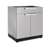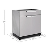 The NewAge Products Outdoor Kitchen 2-Door with Drawer Cabinet lets you organize grilling tools, entertaining supplies, and other outdoor items for a tidy backyard living area. A full-extension drawer provides quick access to cutlery, sunscreen and other necessities, while the multi-function storage space with height-adjustable shelf allows you to store large and heavy items like dishes or backyard games. With a total weight capacity of 350 lbs. the stainless steel frame not only looks great, but easily supports a spanning countertop for added prep space. The Outdoor Kitchen 2-Door with Drawer Cabinet in Stainless Steel or Grove is a versatile storage unit to complete your ideal Outdoor Kitchen.