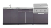 Outdoor Kitchen Aluminum 4 Piece Cabinet Set with Bar, Grill and Sink Cabinet + Countertop