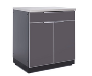 The NewAge Products Outdoor Kitchen 2-Door with Drawer Cabinet lets you organize grilling tools, entertaining supplies, and other outdoor items for a tidy backyard living area. A full-extension drawer provides quick access to cutlery, sunscreen and other necessities, while the multi-function storage space with height-adjustable shelf allows you to store large and heavy items like dishes or backyard games. With a total weight capacity of 350 lbs. the stainless steel frame not only looks great, but easily supports a spanning countertop for added prep space. The Outdoor Kitchen 2-Door with Drawer Cabinet in Stainless Steel or Grove is a versatile storage unit to complete your ideal Outdoor Kitchen.