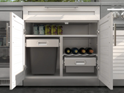Outdoor Kitchen Louvered White 5 Piece Cabinet Set with 3-Drawer, Bar, Grill Cabinet, Performance Grill and Countertop