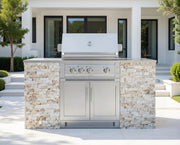The Signature Series delivers a complete Outdoor Kitchen solution that combines premium stainless steel cabinetry with a sophisticated natural stone finish, designed to enhance the elegance and functionality of any backyard space. Perfect for creating a luxurious outdoor entertaining area, this modular system offers preconfigured sets with versatile designs that fit seamlessly into various layouts. With customizable options for stone finishes, countertops, and grill selections, you can craft a personalized outdoor oasis with ease.