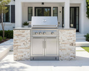 Every component is expertly engineered for a streamlined installation process, featuring precision-fit modules, drop-in grills, integrated sinks, and optional accessories to maximize utility and style. Built for durability and longevity, these cabinets and finishes are resistant to rust, water, and weather, ensuring lasting performance in outdoor environments. The heavy-gauge stainless steel frames and shaker-style doors provide a refined look, while the natural stacked stone delivers a timeless, robust exterior. Choose from premium 304 stainless steel or exquisite granite countertop options for a perfect finishing touch.