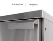 The NewAge Products Outdoor Kitchen 2-Door with Drawer Cabinet lets you organize grilling tools, entertaining supplies, and other outdoor items for a tidy backyard living area. A full-extension drawer provides quick access to cutlery, sunscreen and other necessities, while the multi-function storage space with height-adjustable shelf allows you to store large and heavy items like dishes or backyard games. With a total weight capacity of 350 lbs. the stainless steel frame not only looks great, but easily supports a spanning countertop for added prep space. The Outdoor Kitchen 2-Door with Drawer Cabinet in Stainless Steel or Grove is a versatile storage unit to complete your ideal Outdoor Kitchen.