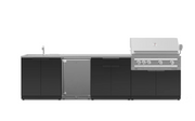 Outdoor Kitchen Black 6 Piece Cabinet Set with Sink, Bar, Grill Cabinet, Platinum Grill, Countertop and Stainless Steel Door Fridge