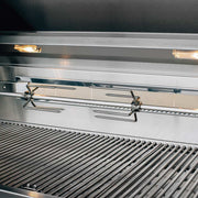 The 42-inch Alturi also features a unique Flame Thrower Ignition that shoots a burst of flame to ignite the main burners and is much more reliable than traditional spark ignition systems. The double lined, spring assisted hood keeps hot air in to ensure a consistent grilling environment complete with a built in 3-inch temperature gauge and interior halogen lighting with LED front panel lighting. In addition, the 15,000 BTU infrared back burner offers a high quality rotisserie burner for professional style rotisserie cooking and includes a storage bracket for the rotisserie spit when not in use. Available for both propane and natural gas, this built in grill ensures a complete outdoor kitchen.