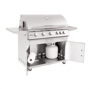 Summerset SIZ40-CART-SIZ40 Sizzler Series Gas Grill On Cart, 40-Inch combines high quality and high performance to provide a great option to complete your outdoor kitchen. The grill features a solid 443 stainless steel construction that's designed for durability and longevity while the heavy duty grill burners are built from a higher quality 304 stainless steel to ensure long lasting performance. Each of the (5) main grilling burners are rated for 12,000 BTU to provide high heat, while the unique captured briquette trays provide even radiant heat across the 875in² cooking surface. The captured briquette trays also provide additional heat to eliminate hot and cold zones. This grill features 8mm thick stainless steel grates offer a thick gauge grilling surface for professional style grill marks.