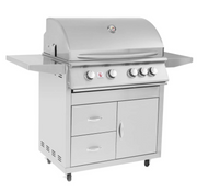Summerset SIZPRO32-CART-SIZ32-SC Sizzler Pro Series Gas Grill On Cart, 32-Inch fuses high end construction and reliable performance to offer an excellent choice for your outdoor kitchen. The grill is built from solid 443 stainless steel construction for lasting durability while the heavy duty grill burners are built from a cast stainless steel to last for years to come. Each of the (4) main grilling burners are rated for 12,000 BTU to provide intense heat when needed, while the signature captured briquette trays ensure evenly distributed radiant heat across the 740in² cooking surface to avoid hot and cold spots. This grill features 8mm thick stainless steel grates for professional style grill marks that are sure to wow.