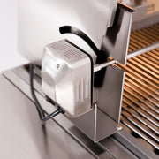 The 44-inch TRL Deluxe also features a unique Flame Thrower Ignition that shoots a burst of flame to ignite the main burners and is much more reliable than traditional spark ignition systems. The insulated and double lined hood keeps hot air in to ensure a consistent grilling environment complete with a built in 3-inch temperature gauge and interior halogen lighting with LED front panel lighting. In addition, the 15,000 BTU infrared back burner offers a high quality rotisserie burner for professional style rotisserie cooking and the unique heat zone separators allow independent zone cooking. Available for both propane and natural gas this built in grill is perfect to complete your outdoor kitchen.