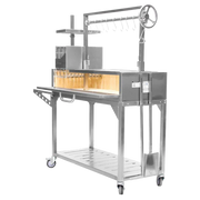 It provides 4 different grilling areas: a main grate with a height adjustable system, a secondary grate and griddle where you can cook your favorite vegetables. Putting all these together, you will get a total of 714 square inches of grilling space. The firebox gaucho style brasero allows you to light up the charcoal quicker and with less effort. It maintains your fire lit and away from the food. You can use wood charcoal or firewood based on your preference to grill like a gaucho. Slow cook some short ribs for 4 hours, some argentine sausage or chorizo or smoke a fish on the main grate while cooking some potatoes on the secondary grate. Bottom and walls are covered with firebricks which extends the product durability but also helps spread the heat evenly. Also includes a bottle opener, 304 stainless steel shovel and coal rake, 4 swivel casters (2 with brake). 5 year limited warranty