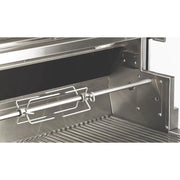 Features a fully integrated motor with 100 lbs. turning capacity. A unique chain-driven design provides consistent and uniform rotation of the rotisserie rod and two rotisserie rod positions to keep foods the proper distance from the burner.