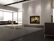 Dare to imagine the most majestic fireplace, respectful of the environment! Exceptionally large, the Frontenac is not only a noble hotel located in the heart of Quebec City; it is also the largest fireplace of the Valcourt line. This sumptuous model has a guillotine glass door and fire screen that simply disappear under the hearth, to easily feed the fire and enjoy a maximum view of the flames.
