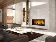 This remarkably proportioned wood fireplace will become the centerpiece of your home. Its perfect rectangle gives it a sober and modern look, and still provides a warm ambiance to the room. Understated yet large, it leaves plenty of room for the beauty of the flames.