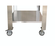 Designed for use with Karma 25" in wood fired ovens, this oven cart is made with durable stainless steel for years of outdoor use. Features a stainless steel bottom shelf for fuel and tool storage, a built-in tool holder to keep your pizza peel ready, a sturdy side handle, and heavy-duty locking casters in which allow you to easily move your oven and position it securely.